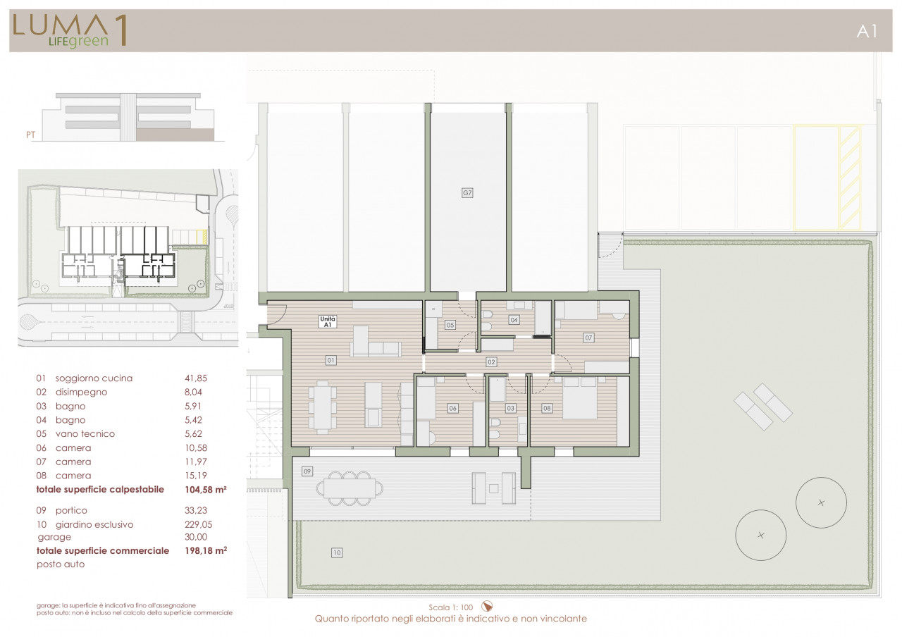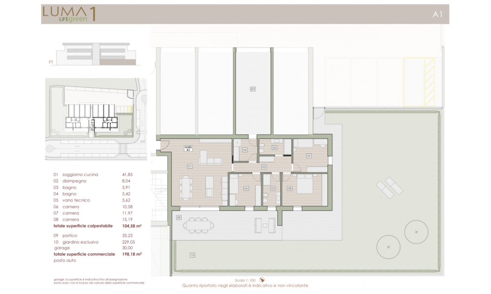 Ulteriori dettagli: Ripostigli (1), Ascensore, Aria condizionata, Giardino, Garage doppio, Posto auto, Riscaldamento a pavimento, Soggiorno con angolo cottura, Piano terra, Nuovo, Immobile di prestigio, Pannelli fotovoltaici, Classe energetica: A4, Panorama: Vista giardino, Numero locali: 4, Porticato, Porta blindata, Numero accessi carrai (1), Vasca, Impianto elettrico: A norma